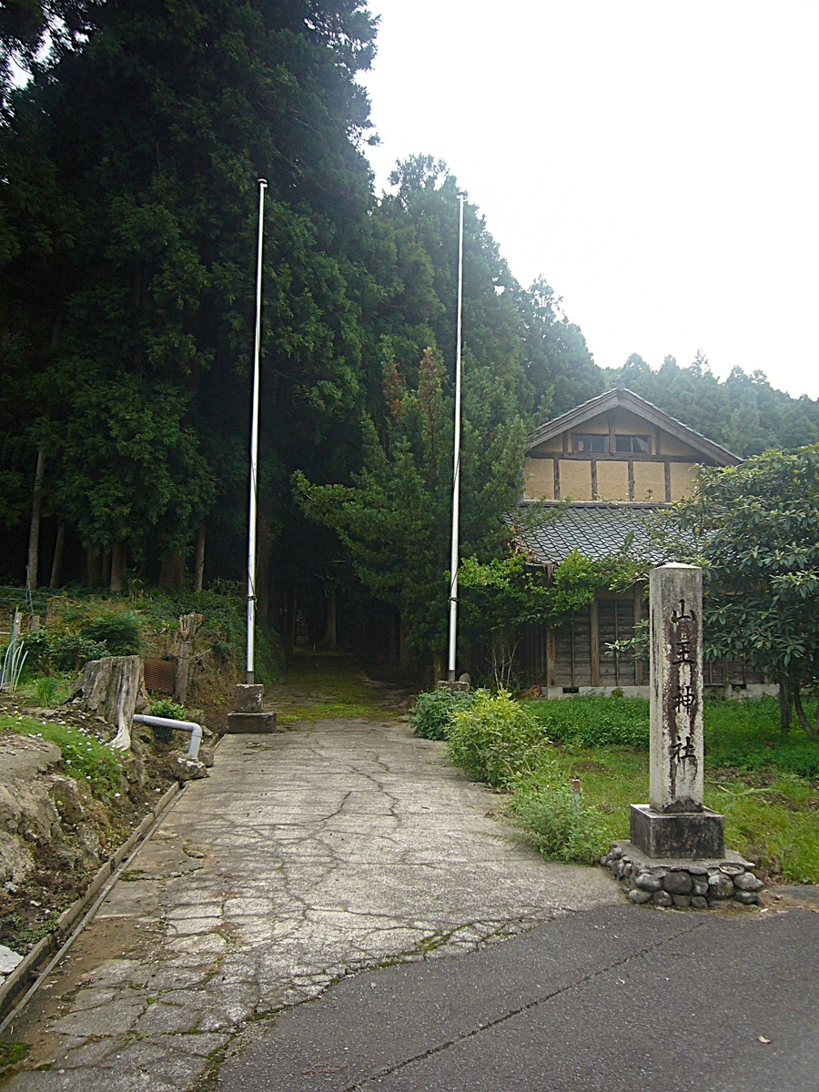 ・・と思いきや、集落内を歩けど鎮座するその地への道に辿り着けない。声をかけたくても朝の時間帯では誰一人として見かける人影もなく途方に暮れる。集落の中ほどに「山王神社」の石柱を見かけた(もしかして、合祀されたのか?)ここで手間取っていても仕方がないので諦めて次の神社へと車を走らせることにした。