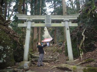 神社の境内に入ると、社殿を包み込むようにそびえる高さ約23m・幅約40mの巨岩を実際に目にして驚く。約3万年前の山体崩壊によってもたらされた大地の結晶です。巨大な「神の岩」を見上げ、そのゆるぎない存在感には心が洗われて感動するばかりでした。